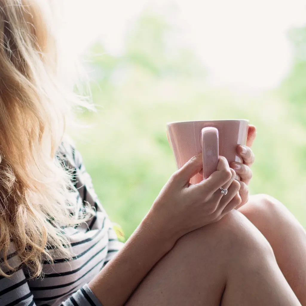 A woman gazing out of a window, symbolizing introspection and self-awareness as she reflects on her behaviors and emotions.